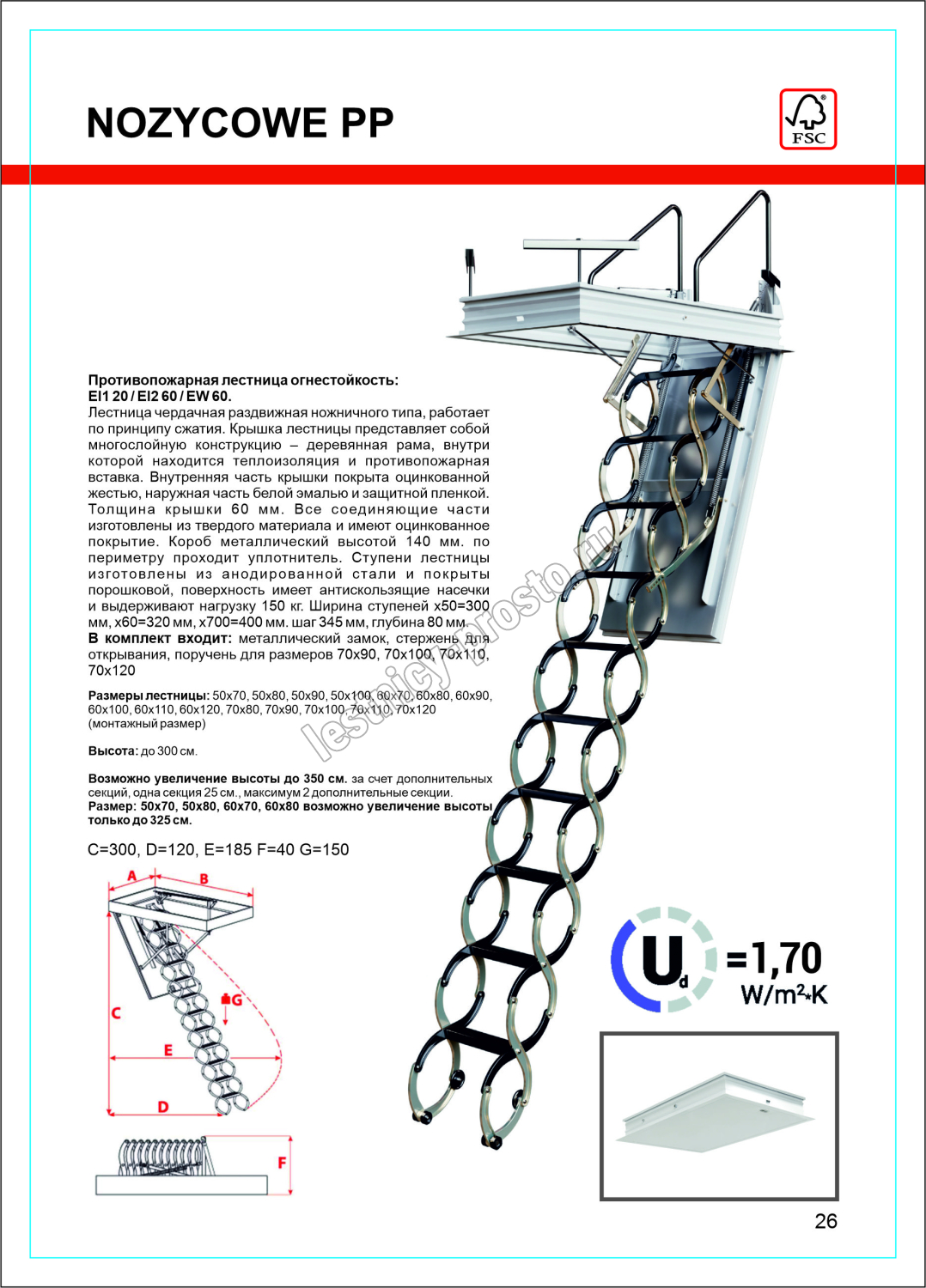 Противопожарная чердачная лестница с люком LSF OMAN NOZYCOWE PP 70х100 см, h-300 см