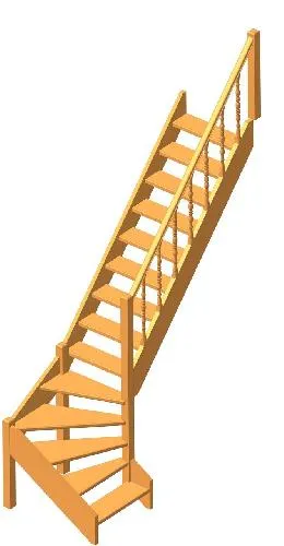Ступени и поручень лестницы изготовлены из дуба, остальные элементы из сосны.