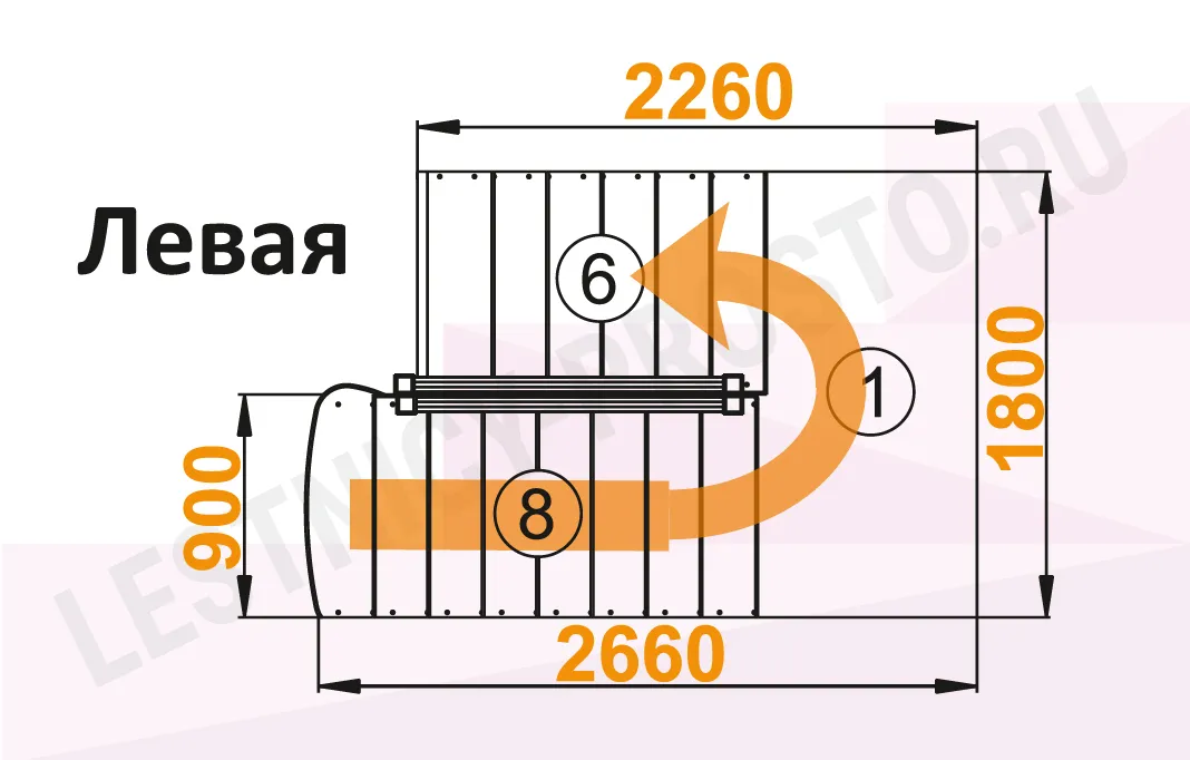 Базовый комплект включает в себя деревянные элементы лестницы и ограждения без какого-либо покрытия. Стандартные ограждения можно заменить любыми на ваш вкус (стоимость при этом может измениться).