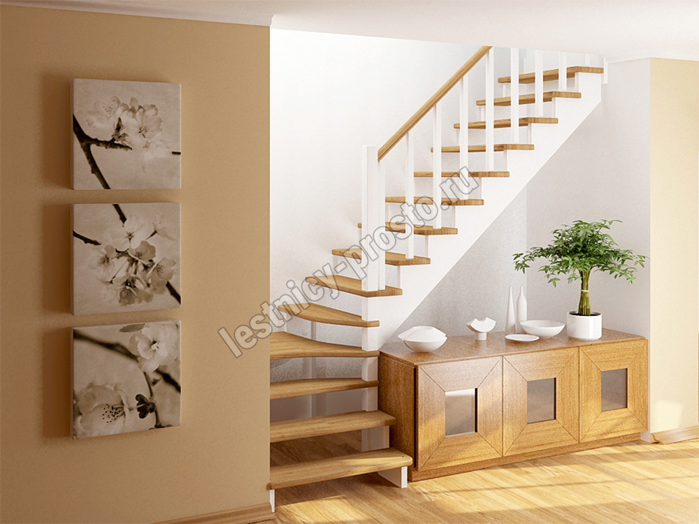 Базовый комплект включает в себя деревянные элементы лестницы и ограждения без какого-либо покрытия.