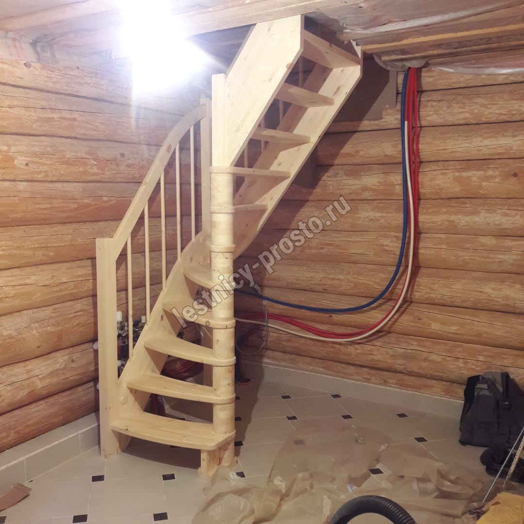 Лестница из сосны под покраску ЛС-91М+2 ступени сверху