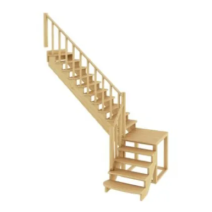 Ступени и поручень лестницы изготовлены из ясеня, остальные элементы из сосны.