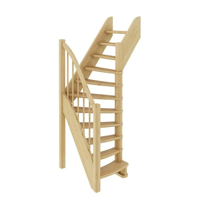 Базовый комплект включает в себя деревянные элементы лестницы и ограждения без какого-либо покрытия.