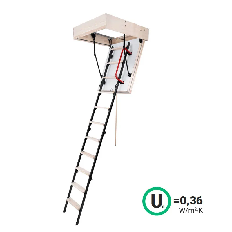 Боковой металлический поручень LXH красного цвета облегчает передвижение по лестнице и крепится к угловым петлям крышки люка. Может устанавливаться с одной или с обеих сторон лестницы.
