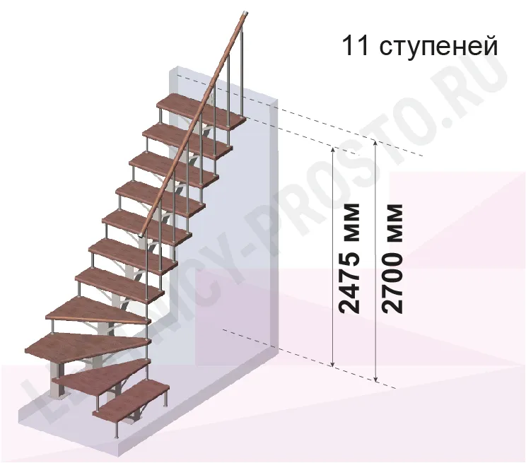 Лестница PROSTO MONO Г-образная h270 см, ступени лиственница