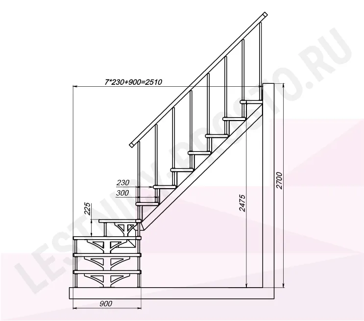 - таким образом вы получаете возможность увеличить общую высоту подъёма лестницы до необходимой.