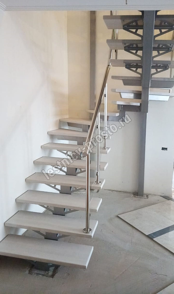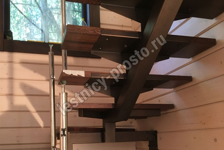 Основой лестницы служит цельносварной центральный косоур, который обеспечивает надёжную прочность конструкции и "парящий" дизайн, лестница с таким каркасом в интерьере смотрится легко и воздушно.