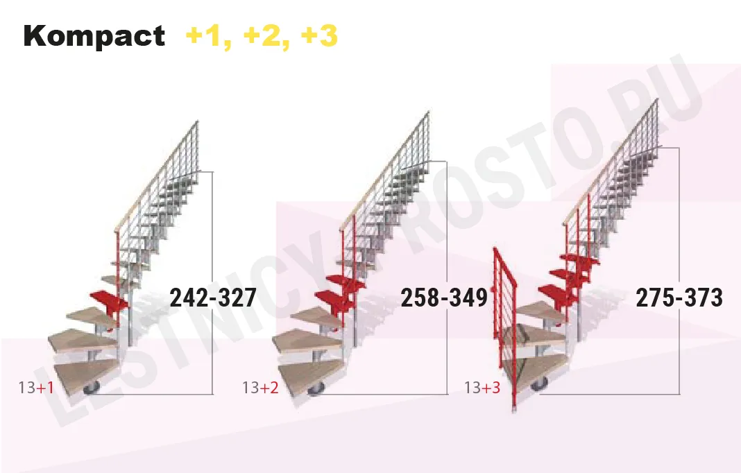 При монтаже этой лестницы, возможно регулировать высоту и глубину шага, таким образом можно получить лестницу под высоты этажа в диапазоне 2250 - 3030 мм, кроме того, установив дополнительный комплект увеличения высоты, можно поднять высоту лестницы до 3730 мм. Ширина проступи регулируется при монтаже в пределах 180 - 220 мм. Каркас и стойки ограждения выполнены из пластифицированного металла. Уникальный модульный каркас позволяет собрать лестницу необходимой формы.