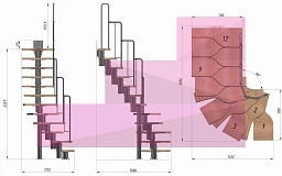 - Возможность устанавливать лестницу как прямую, так и с поворотом внизу или вверху; при этом нужно понимать, что поворот менее удобен, чем прямой участок лестницы.