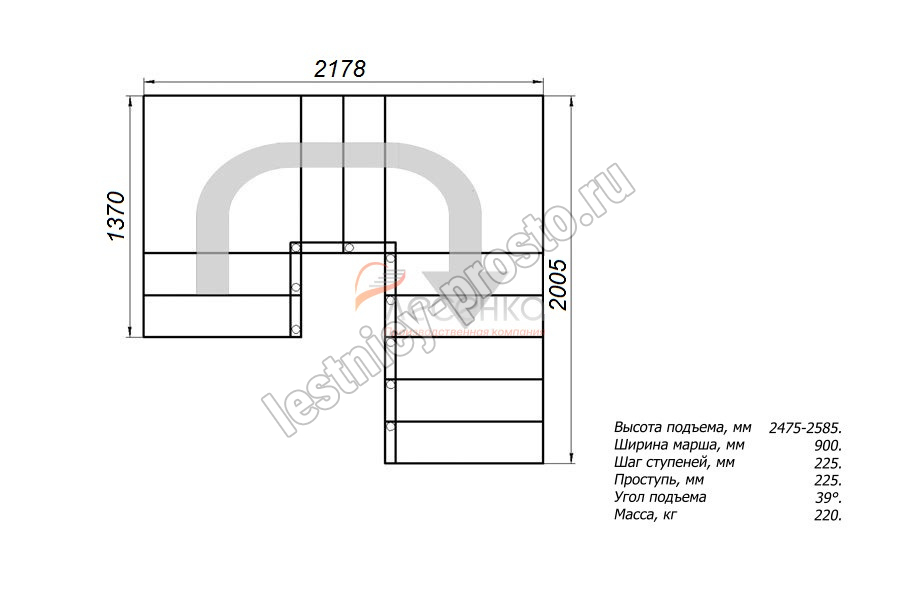 Модульная лестница Комфорт 225 2475-2585, Серый, Бук, Крашеная