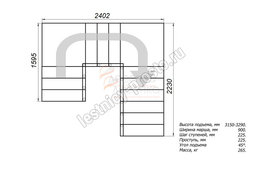 Модульная лестница Комфорт 225 3150-3290, Черный, Сосна, Крашеная