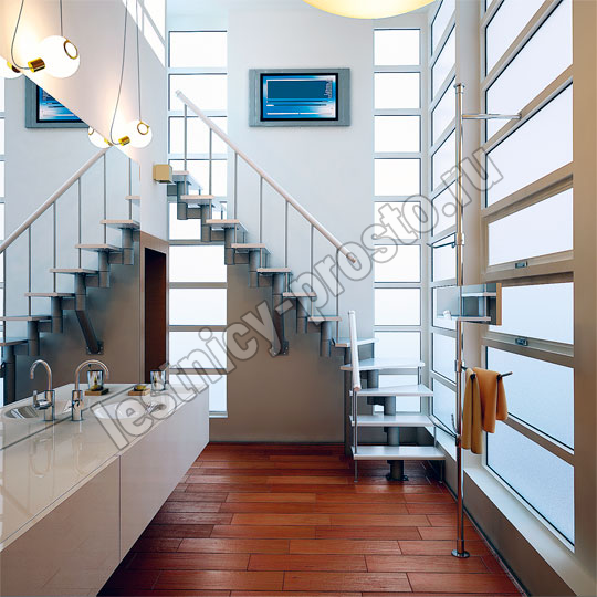 Каркас лестницы представляет собой набор модулей, которые комплектуются уже готовыми к монтажу.