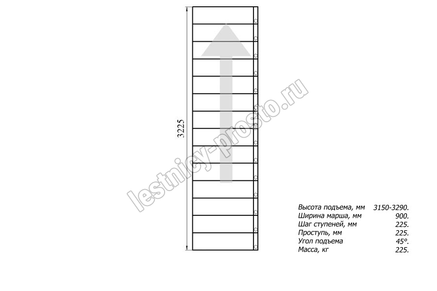 Модульная лестница Стандарт 3150-3290, Белый, Лиственница, Нержавеющая сталь