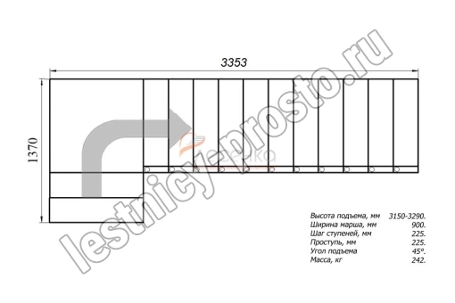 Высота лестницы 3150 - 3290 мм