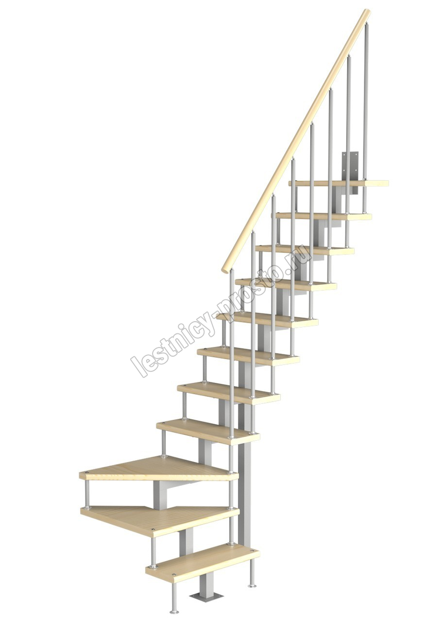 Модульная малогабаритная лестница Компакт 2475-2700, Серый, Лиственница, Крашеная