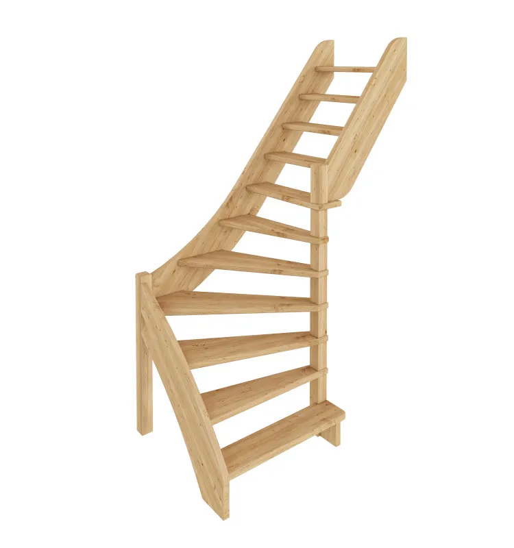 Лестница представлена в двух вариантах: с поворотом направо и с поворотом налево. Благодаря возможности регулировать высоту шага с помощью пластиковых вставок (входят в базовый комплект), высоту лестницы можно варьировать в пределах от 2860 до 3090 мм. Кроме того, купив дополнительную секцию для этой лестницы, можно поднять высоту до 3320 мм. Поручень изготовлен из массива дуба в тон ступеням. Ступени и поручень покрыты износостойким защитным лаком.