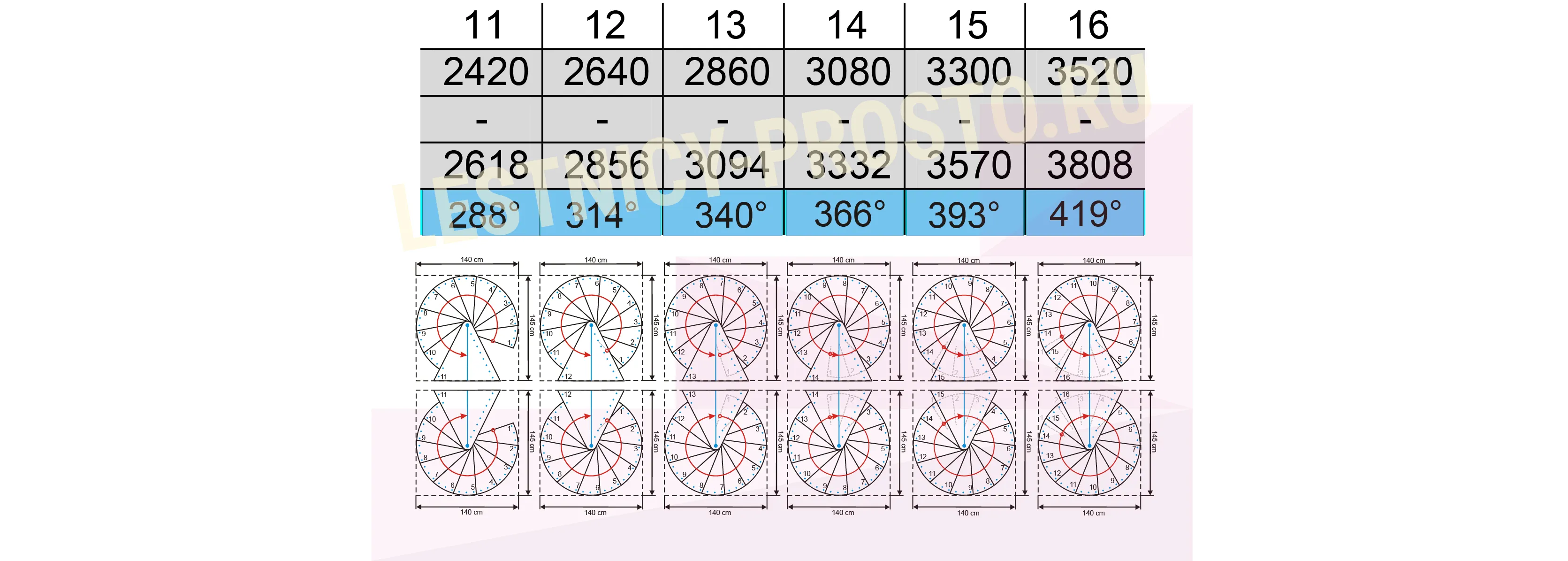 Лестница представлена в двух вариантах: с поворотом направо и с поворотом налево. Благодаря возможности регулировать высоту шага с помощью пластиковых вставок (входят в базовый комплект), высоту лестницы можно варьировать в пределах от 2860 до 3090 мм. Кроме того, купив дополнительную секцию для этой лестницы, можно поднять высоту до 3320 мм. Поручень изготовлен из массива дуба в тон ступеням. Ступени и поручень покрыты износостойким защитным лаком.