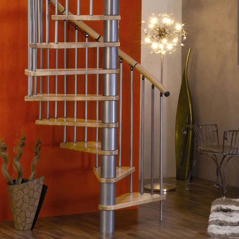 Винтовая лестница SPIRAL WOOD d120 см, серебро, лакированный бук