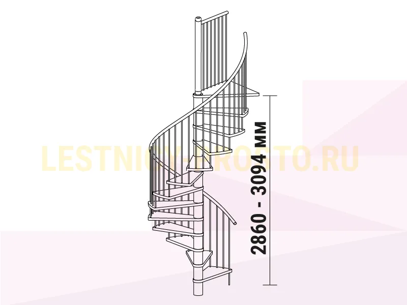 Лестница представлена в двух вариантах: с поворотом направо и с поворотом налево. Благодаря возможности регулировать высоту шага с помощью пластиковых вставок (входят в базовый комплект), высоту лестницы можно варьировать в пределах от 2860 до 3090 мм. Кроме того, купив дополнительную секцию для этой лестницы, можно поднять высоту до 3320 мм.