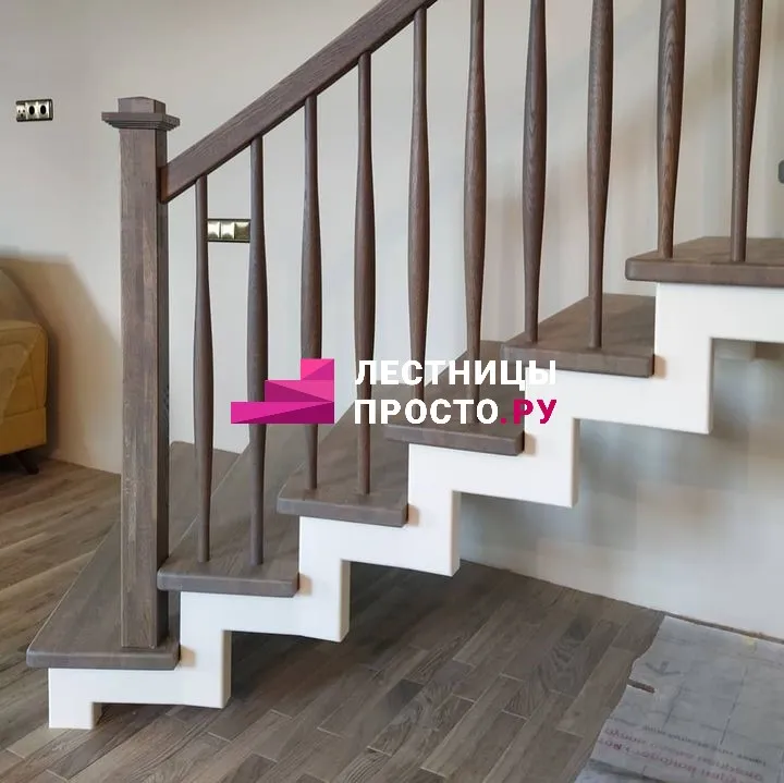 Лестница на второй этаж из лиственницы по индивидуальному проекту LP-000468