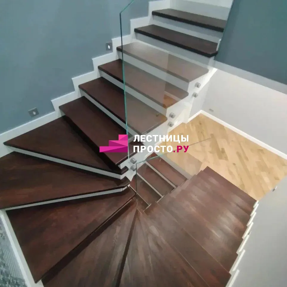 Лестница по индивидуальному проекту со стеклянным ограждением LP-2935